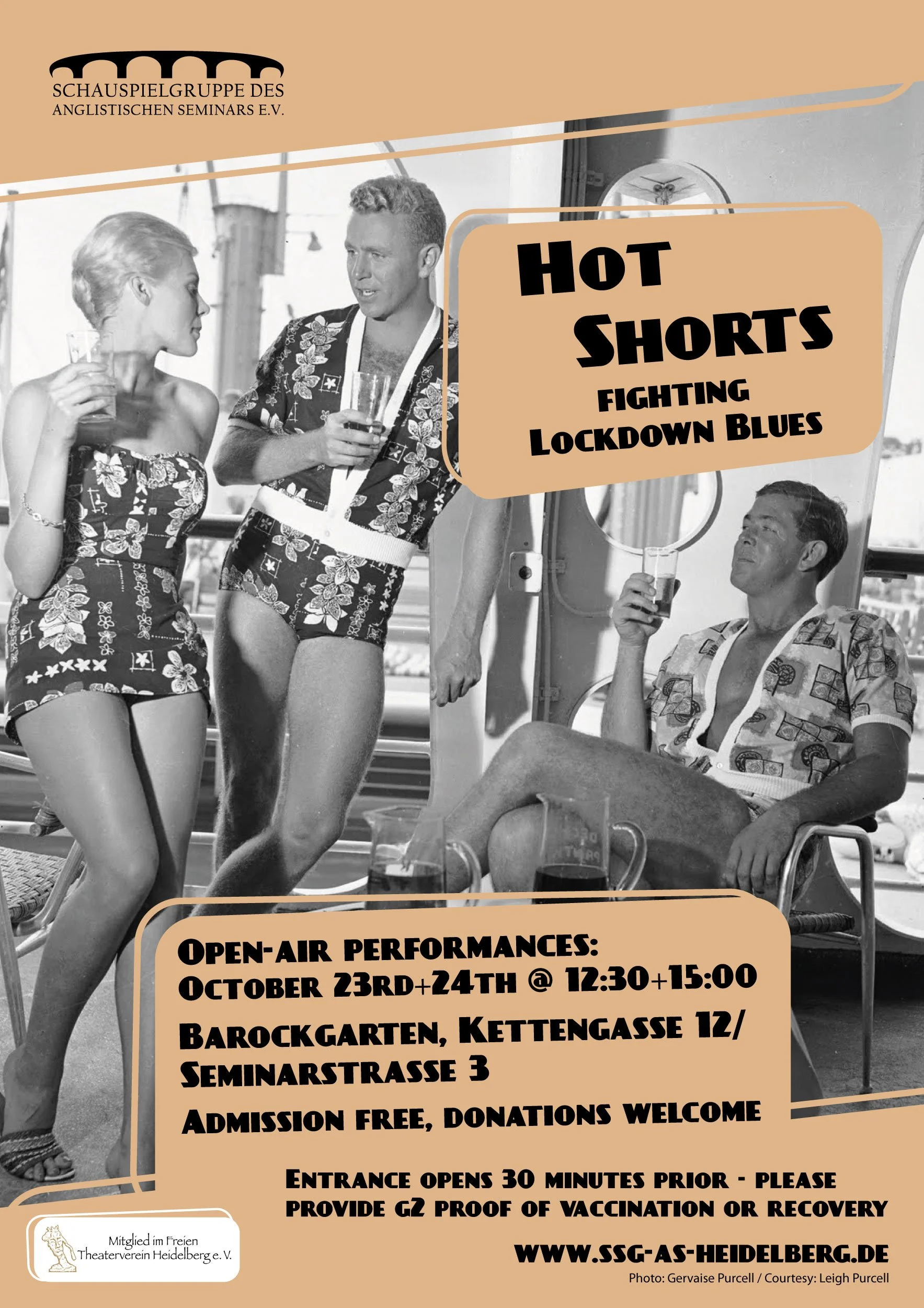 At last, after a theatre-less year, we performed six new plays written by members of the Schauspielgruppe in the English Department garden.