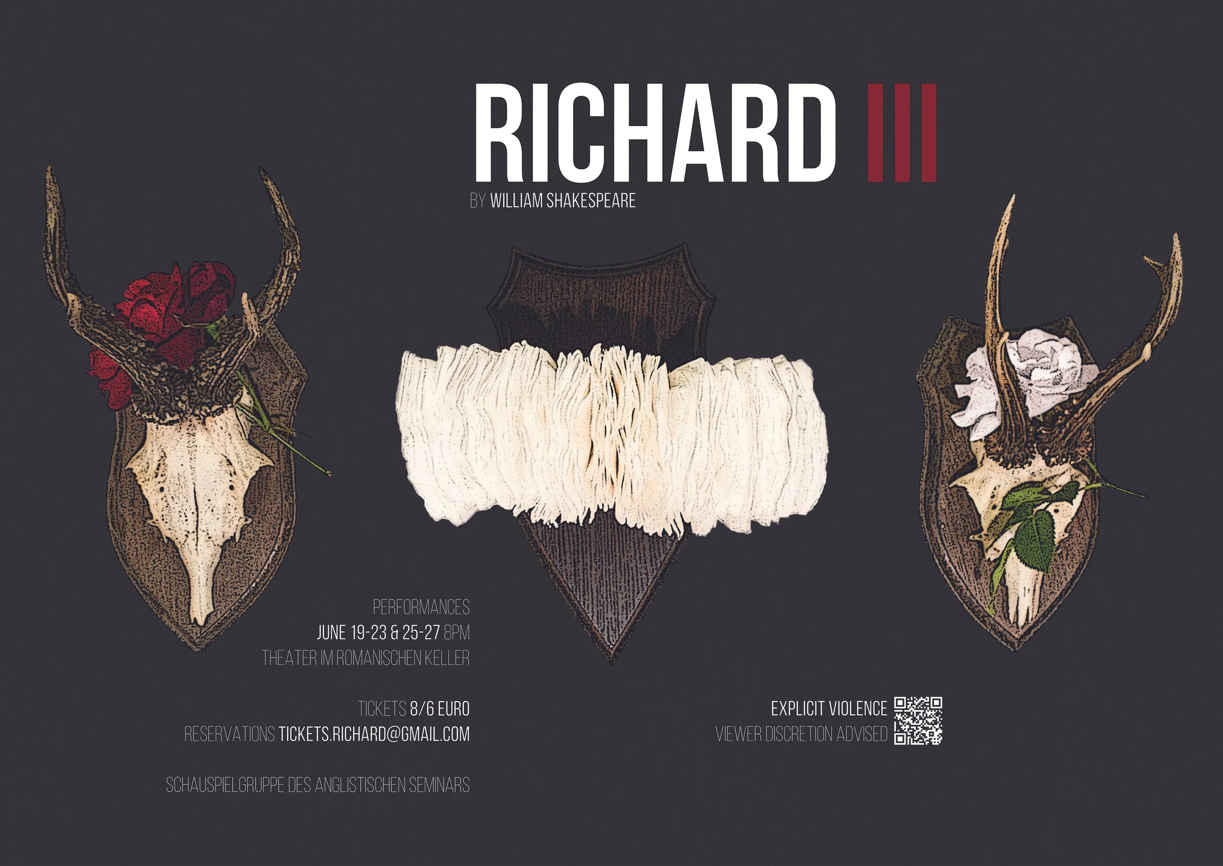 In the fall-outs of the War of the Roses one man eagerly grabs for power. Richard III is a play about mistrust, paranoia, violence, and the lead character's strife for greatness. In a world of constant war and psychological as well as physical abuse everyone has to fend for themselves.